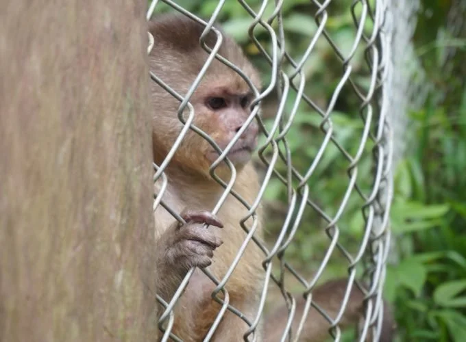 We have several cages of monkeys. In one cage, there are three calm and friendly monkeys. They are the newest monkeys in the centre, and are not quite named yet. One of them earned her name when she escaped four times in one day. The name Houdini has now stuck. The other two are sometimes called George and Luis, but that is in constant flux. Houdini likes to groom people’s nails, but usually just ends up making your hands messier.